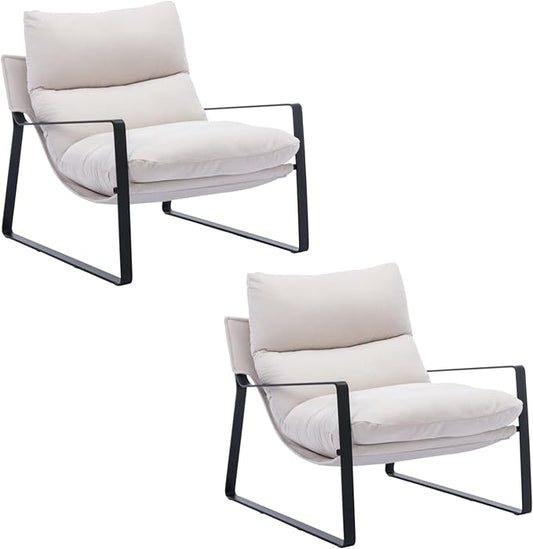 LSSPAID Accent Chairs, Modern Line Fabric Upholstered Armchairs, Comfy Leisure Reading Chair Fluffy Single Sofa Chair for Living Room, Bedrooms, Office (Beige, 2PCS)