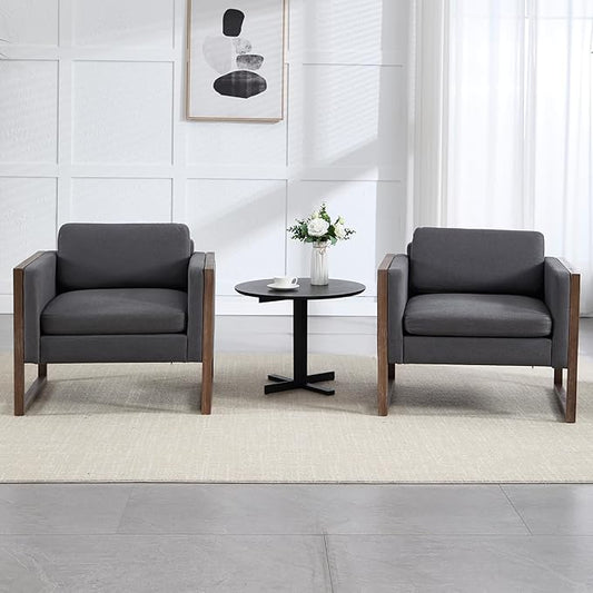 Kmax Modern Accent Chairs Set of 2, Charcoal Fabric Upholstered Club Chair, Comfy Arm Reception Chairs Living Room Chair for Hotel Conference, Walnut Wood