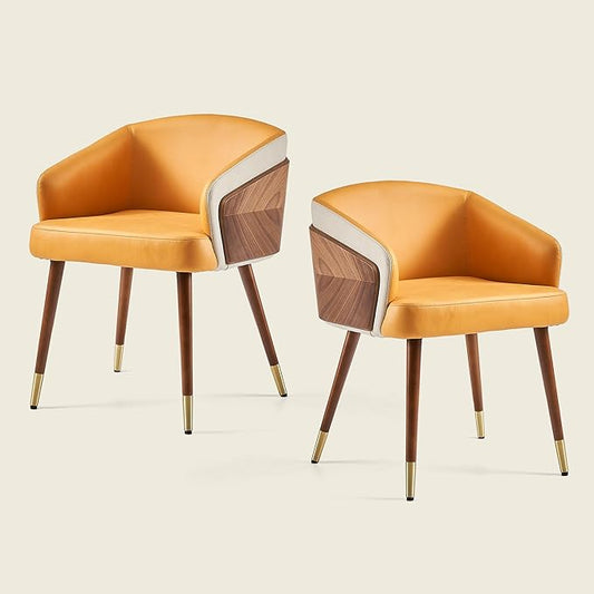 ARTPLAN Dinning Room Chairs Set of 2,Fabric Upholstered Accent Chairs for Living Room Arm Chairs for Home Indoor Furniture,Yellow