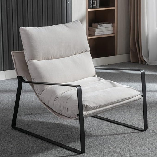 HEAH-YO Modern Accent Chair Set of 1, Comfy Living Room Chair with Removable Cushion and Solid Metal Frame, Chenille Fabric Reading Side Chair for Bedroom, White
