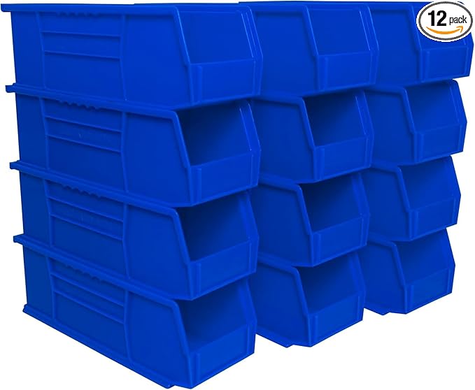 Akro-Mils 30234 AkroBins Plastic Storage Bins, Space-Saving Stackable Bins for Garage, Pantry, Craft Organization, 15" x 5" x 5", Blue, 12-Pack