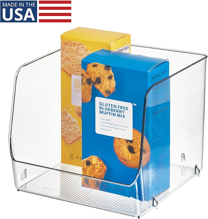 iDesign Linus Stacking Organizer Bins for Kitchen, Pantry, Office, Bathroom, Extra Large-Clear