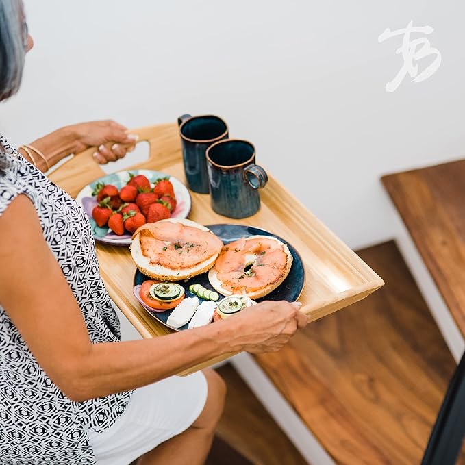 - Easy to carry: sturdy built-in handles on each side allow for easy transportation of meals from the kitchen to living room, bedroom or outdoors; a high wall surrounding the tray keeps things neat and in place