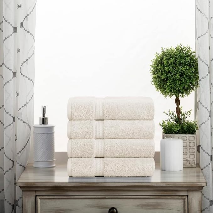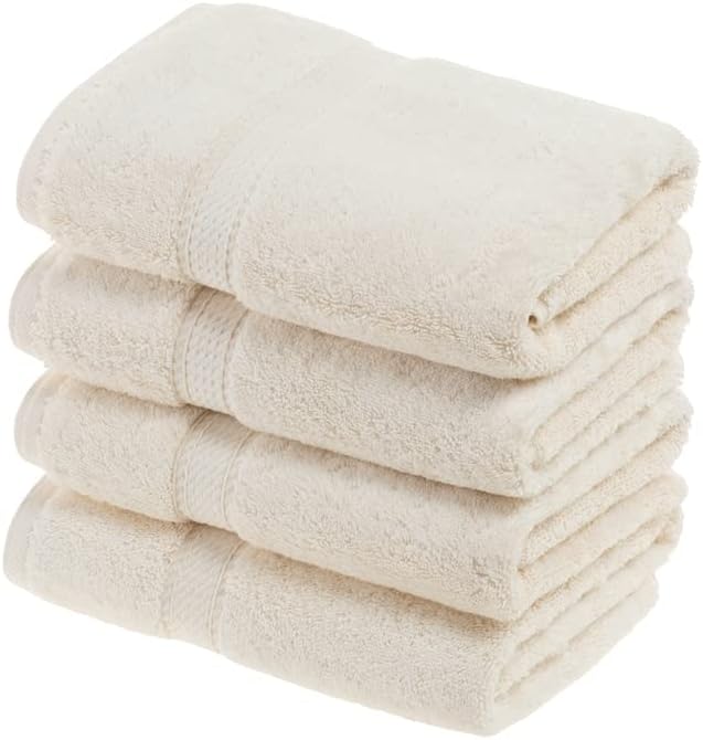 Superior Egyptian Cotton Pile Hand Towel Set of 4, Ultra Soft Luxury Towels, Thick Plush Essentials, Absorbent Heavyweight, Guest Bath, Hotel, Spa, Home Bathroom, Shower Basics, Cream
