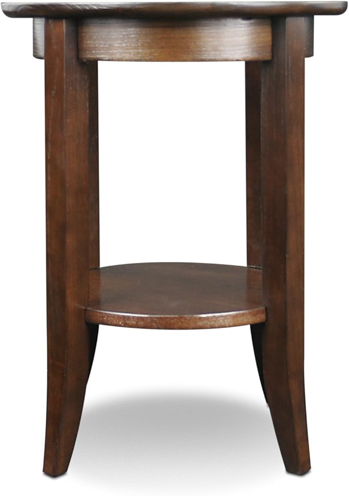 Leick Home 10036 Round Glass Top Side Table with Shelf, Chocolate Cherry and Tinted Glass