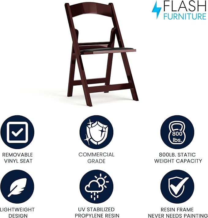 Flash Furniture Hercules™ Series Folding Chair - Red Mahogany Resin – 1000LB Weight Capacity Comfortable Event Chair - Light Weight Folding Chair