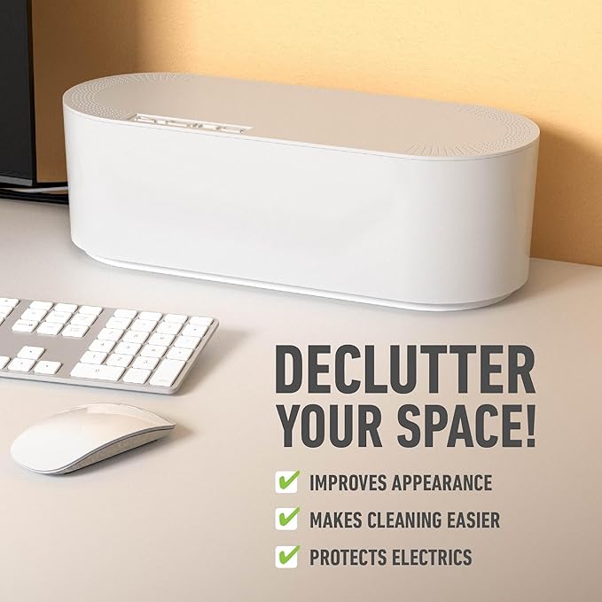 D-Line Cable Management Box, Power Strip Holder, Floor Outlet Hiders, Desk Cord Organizer, Cover TV Wires, Wire Storage, Extension Hider, Office Concealer for Cords, Baby Proof Cables - Large, White