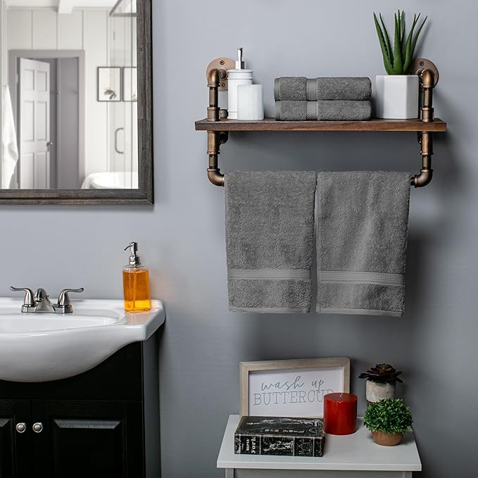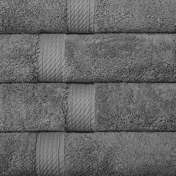 Superior Egyptian Cotton Pile Hand Towel Set of 4, Ultra Soft Luxury Towels, Thick Plush Essentials, Absorbent Heavyweight, Guest Bath, Hotel, Spa, Home Bathroom, Shower Basics, Charcoal