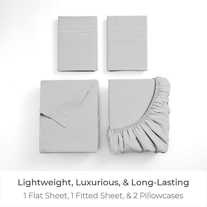 Mellanni Queen Sheets Set - 4 PC Iconic Collection Bedding - Hotel Luxury, Extra Soft, Cooling Bed Sheets - Wrinkle, Fade, Stain Resistant (Queen, Light Gray)