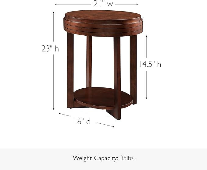 - Exceptional Design: Measuring 21" L x 16" W x 23" H, this table features an oval shape with a diamond-matched veneer top, grooved surface texture, and a rich Chocolate Cherry finish