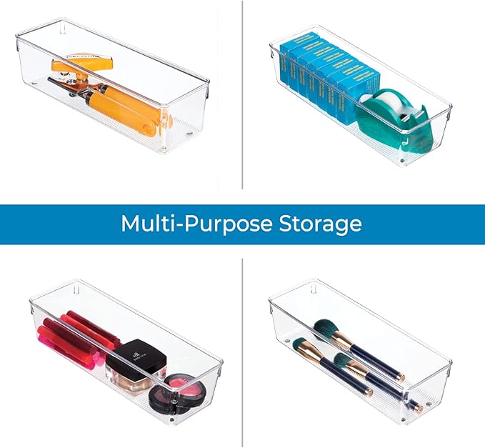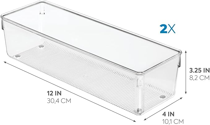- SET OF TWO – Set of two 4" x 12" x 3" plastic drawer storage organizers, perfect for your use throughout your home or office; use them as a cabinet organizer, for pantry storage, kitchen storage, and much more