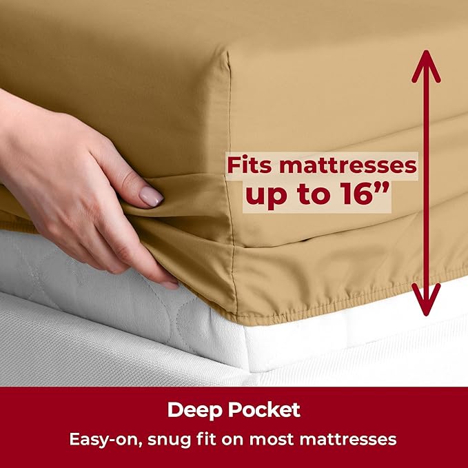 Mellanni Twin XL Sheets Set - 3 PC Iconic Collection Bedding - Hotel Luxury, Extra Soft, Cooling Bed Sheets - Wrinkle, Fade, Stain Resistant (Twin Extra Long, Gold)