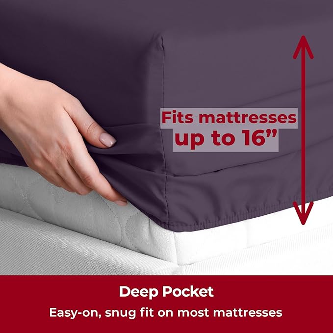 Mellanni Twin XL Sheets Set - 3 PC Iconic Collection Bedding - Hotel Luxury, Extra Soft, Cooling Bed Sheets - Wrinkle, Fade, Stain Resistant (Twin Extra Long, Purple)