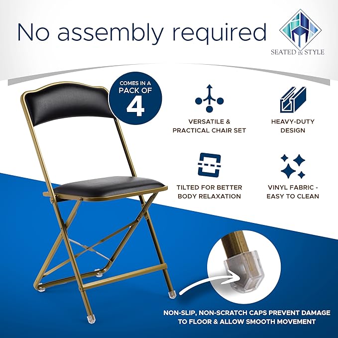 - Fancy Party or Home Essential - Host a delightful event without running out of seats or simply accentuate the look of your humble abode! Our padded folding chairs 4-pack set offers both style and comfort.