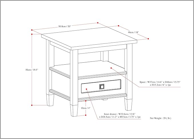 - COMPACT DIMENSIONS: Measuring 18"D x 20"W x 19.5"H, this end table fits neatly beside sofas, beds, or accent chairs.