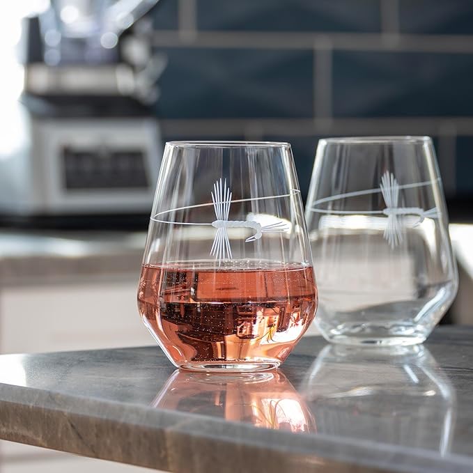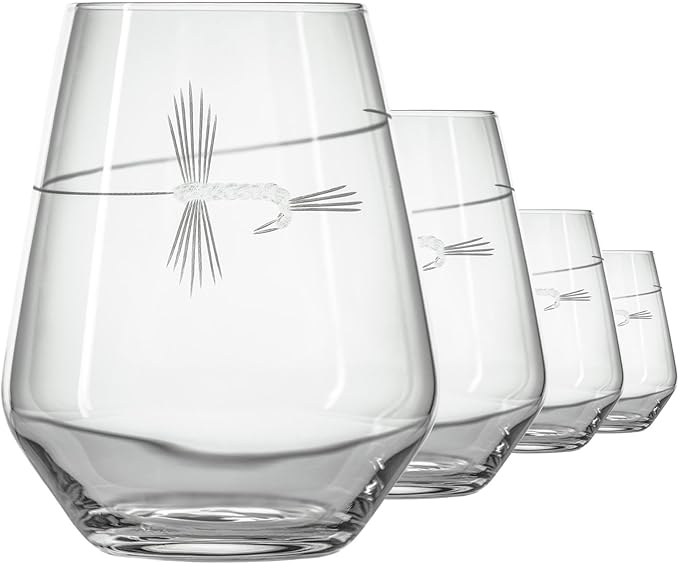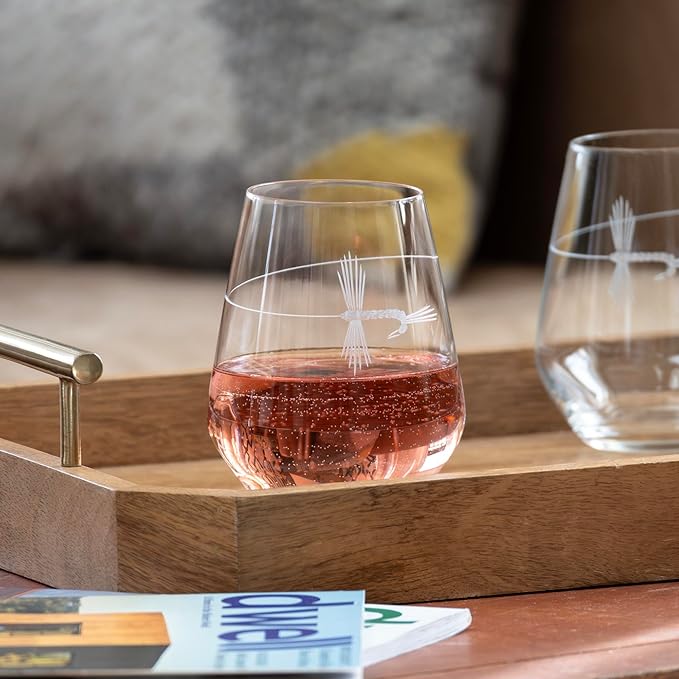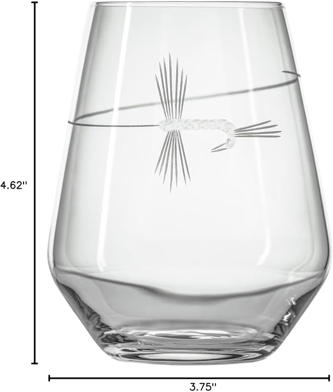 - OUTDOOR CHIC: The engraved fly fishing design offers a nature-inspired twist on classic stemless wineware.