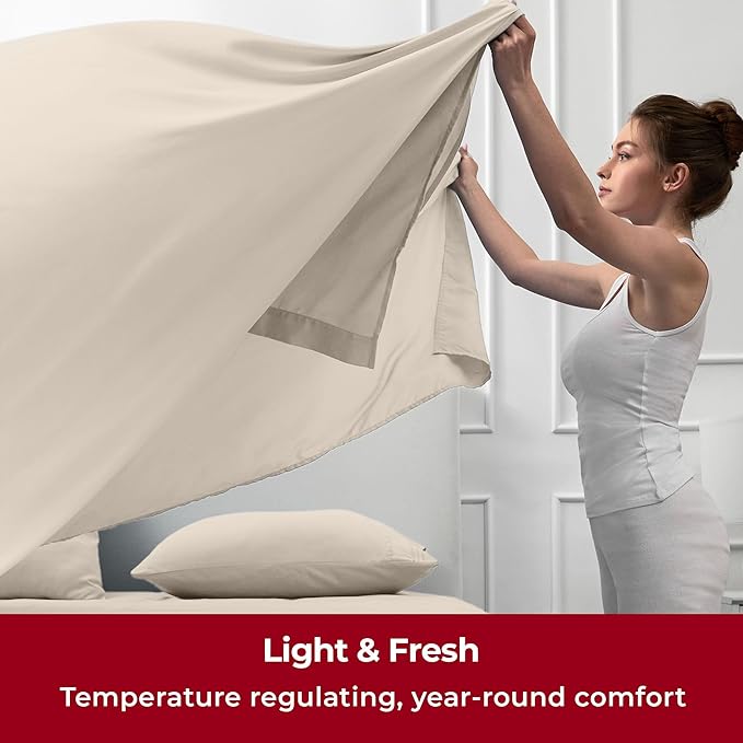 - Lightweight Luxury for Year-Round Comfort - Designed to be airy and ultra-light, our sheets offer effortless comfort in every season. Their thin, breathable construction enhances airflow, wicks moisture, and dries quickly. Despite their lightweight feel, these sheets are exceptionally strong and more durable than cotton, resisting stains, tears, and wear from frequent washing. Perfect for busy households with kids or pets.