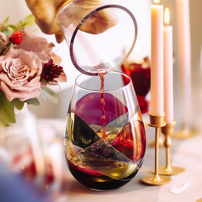 - ✨ STEMLESS ELEGANCE FOR ANY SPECIAL MOMENT – Premium stemless wine glasses designed for red wine, white wine, rosé, and sparkling wine. These hand-blown, hand-painted glassware pieces combine a modern wine glass silhouette with the beauty of artisan wine cups, offering a comfortable grip and durable glass perfect for entertaining, dinners, parties, celebrations, and everyday use. Ideal as unique wine glasses for home, bar, or special events.