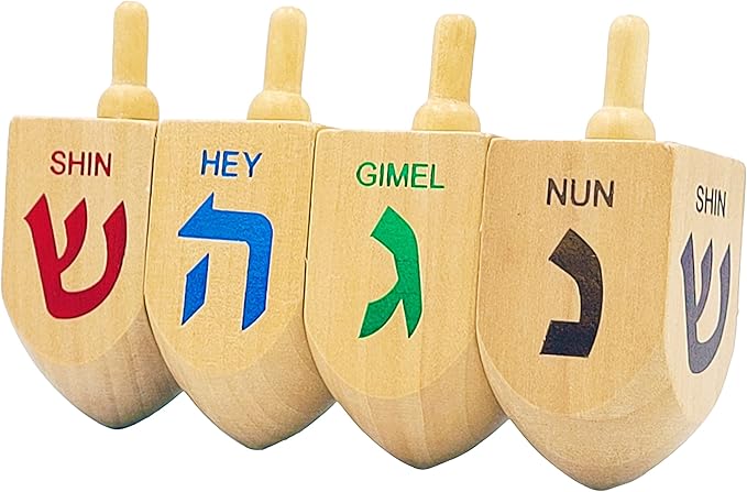 - Natural Wood X-Large Dreidels with Foil Embossed Hebrew Letters & English Translation. Great for all Kids Ages 3 and up