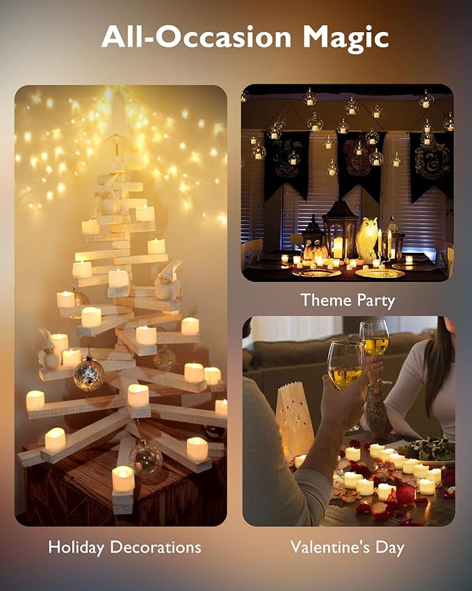- VERSATILE: Sized at 1.5"Dia x 1.3"H, these electric tea lights fit most tea lights/votive holders and wall sconces. Perfect for adorning occasions such as weddings, parties, anniversaries, or festivities like Halloween and Christmas, they will undoubtedly amplify the joy and charm of any occasion