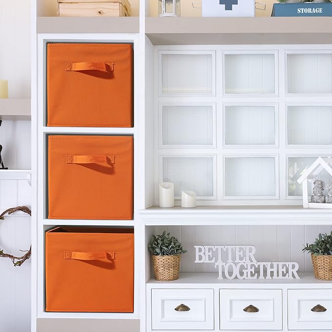 Sorbus Foldable Storage Cubes - 6 Fabric Baskets for Organizing Pantry, Shelf, Toy Box, Cubby, Closet - 11 Inch Collapsible Closet Organizers and Storage Bins with Handle (Orange)