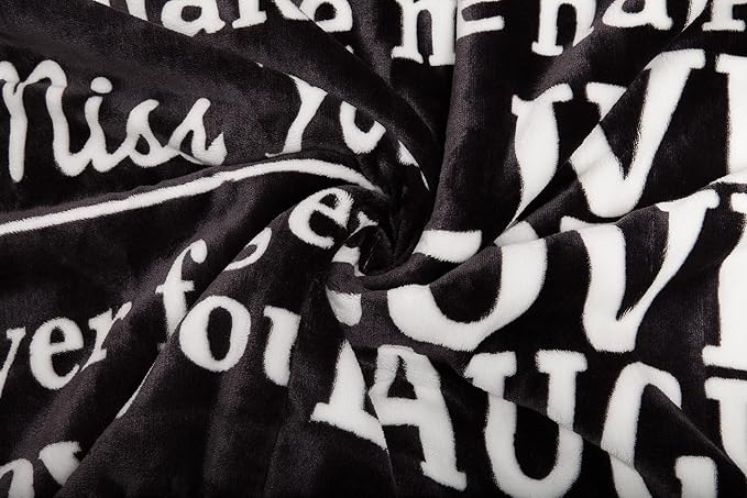 - MESSAGE & WORDINGS: The words beautifully written out on the blanket include: Love you Miss You, Thinking of You, You are my Only Sunshine, Live Love Laugh, Love you to the moon and back, You make me happy, Love you more, Never forget I love you
