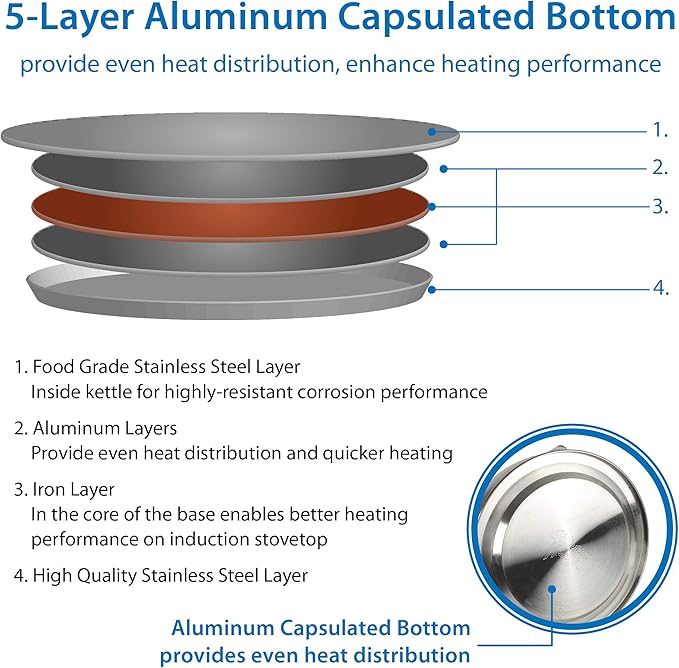 - β‘ Quick Boil Base β 5-layer encapsulated aluminum bottom ensures fast and even heat distribution.