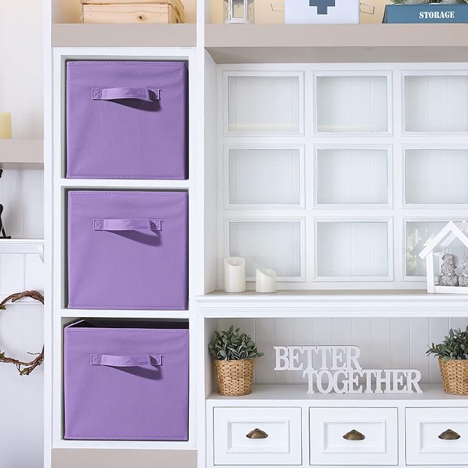 - Pastel Purple Foldable Storage Cube Basket: 6 Pack Sorbus Foldable basket set provides attractive, lightweight solutions to many storage and organization needs while keeping household items tidy and organized - Complete storage cubes, closet spaces, nurseries, and more. Our Foldable Storage Cubes measure approximately 11" H 10.5 x 10.5 Storage Cubes