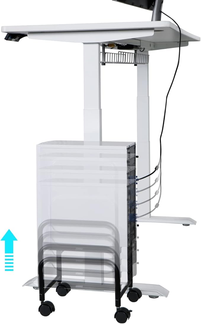 - A good partner to your standing desk, permitting users to adjust the CPU height in five levels for easier access, without worrying about the length of cables while adjusting the converters