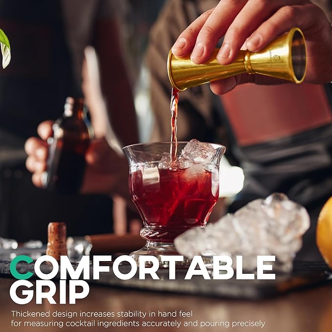 - DESIGN: Rolled lip and professional welded structure make double jigger generous and beautiful, comfortable to touch