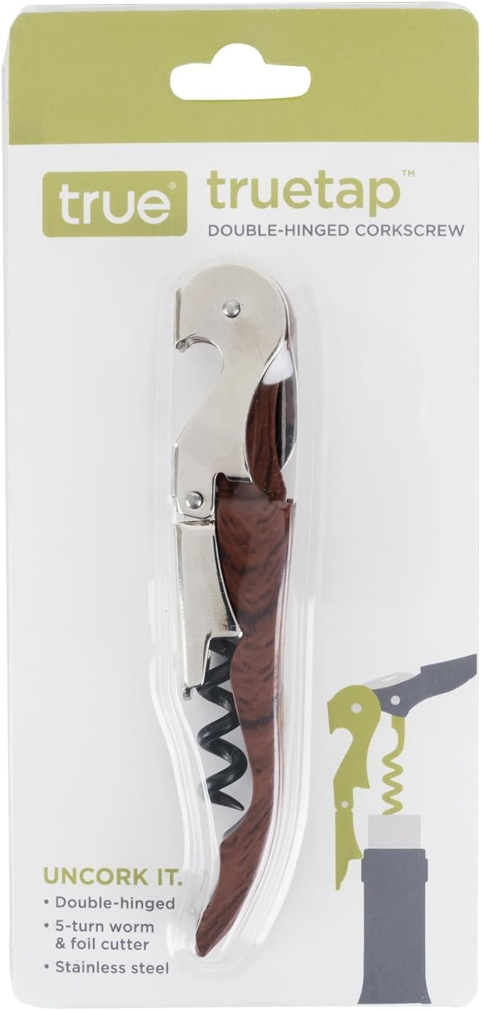 True Truetap Double Hinged Waiter's Corkscrew Wine Opener, Stainless Steel Wine Bottle Opener with Built In Foil Cutter, Home Bar Tools, Bar Cart Accessories, Wedding Gifts, Set of 1, Natural