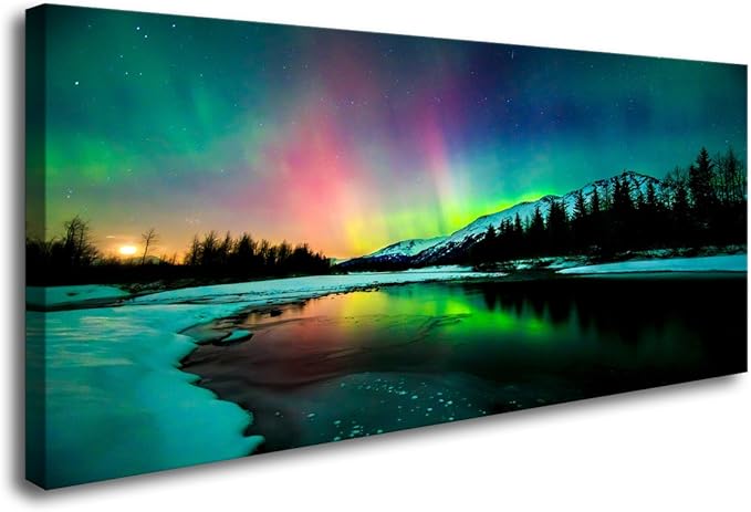 S01950 Wall Art Aurora scenery Painting on Canvas Stretched and Framed Canvas Paintings Ready to Hang for Home Decorations Wall Decor