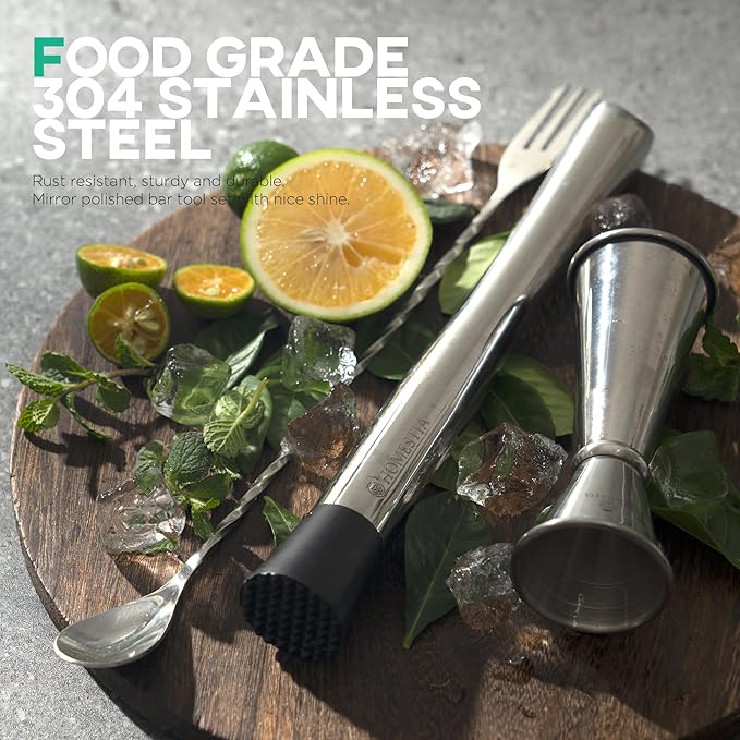 - Included Components : 1*Cocktail Spoon, 1*Dounle Jigger, 1*Muddler