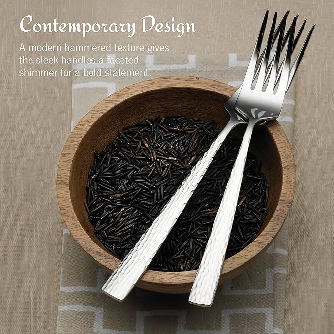 - CONTEMPORARY DESIGN: A modern hammered texture gives the sleek handles a faceted shimmer that will make a bold statement at every dining occasion.