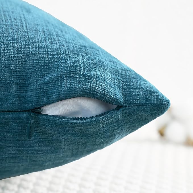 CaliTime Throw Pillow Covers Decorative 22 X 22 Inches Pack of 2 Cozy Chenille Cushion Cases for Couch Sofa Bed Living Room Home Ocean Blue
