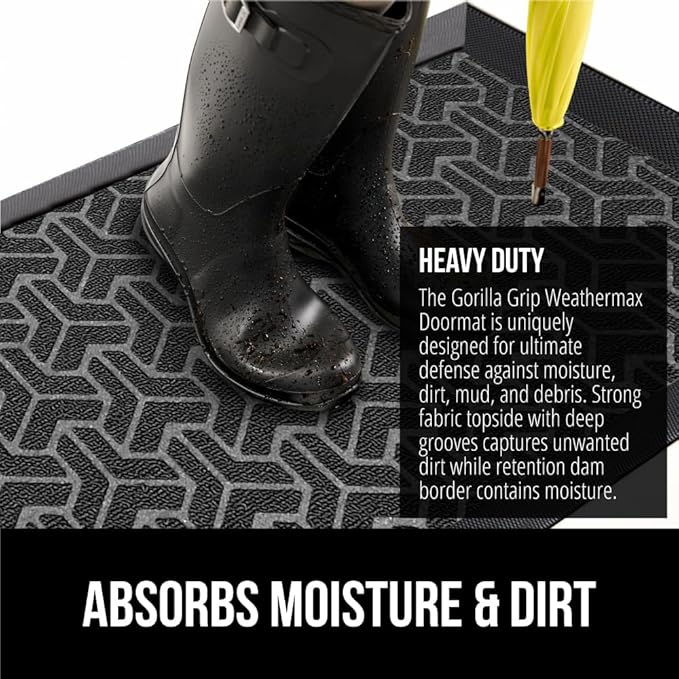 - THE ORIGINAL WEATHERMAX ALL SEASON DOORMAT: Gorilla Grip's Original WeatherMax doormat is built tough with a heavy duty, yet soft and flexible construction; deep grooves, beveled rubber border and retention dam help capture dirt, debris and moisture