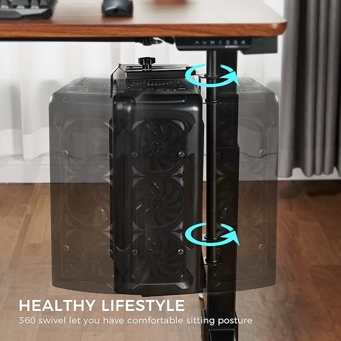 - 360 degree swivel: Easy to get quick access to backside port and power cord, keep your PC & fan cool, and suitable for any type of desk leg. If you own a gaming case with rgb lights, you can enjoy light atmosphere from all angles.