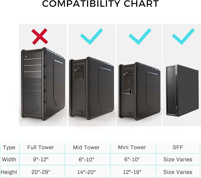 - Adjustable CPU Mount: Universal computer tower fits most PC cases with adjustable width from 6.3" - 10.2" and adjustable height from 0 to 20.5" with more adjustable range than others. Supports weights up to 44 lbs.