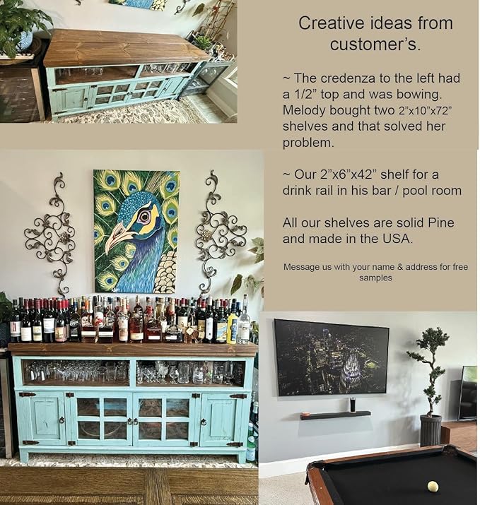 - Elevate Your Space with Rustic Charm: Transform your living room or any space with our large floating shelves for wall. These 42 inch floating shelf beauties, crafted from natural wood, add a touch of rustic warmth and provide ample display space for your cherished items.