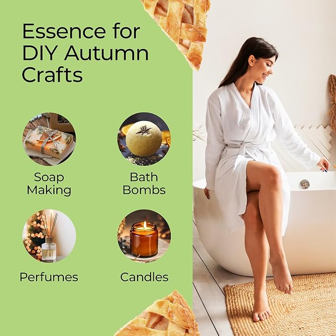 - Versatile Autumn Ambiance: Enhance your DIY projects with this fall fragrance oil. It pairs beautifully with apple pie diffuser oil. Perfect for fragrance oil candle making and fragrance oil soap making, creating a warm, inviting atmosphere