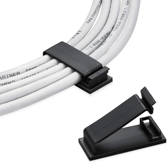 50Pack Self Adhesive Cable Management Clips, Cable Organizers Wire Clips Cord Holder for TV PC Laptop Ethernet Cable Desktop Home Office Indoor/Outdoor