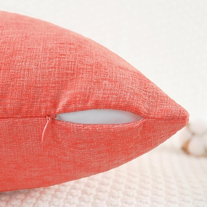 CaliTime Throw Pillow Covers Decorative 18 X 18 Inches Pack of 2 Cozy Chenille Cushion Cases for Couch Sofa Bed Living Room Home Living Coral