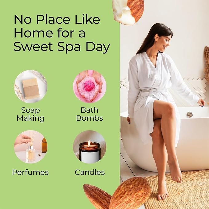 - Versatile Uses For Oil: Blend with a carrier oil to create body oil. The Sweet Almond scent deepens soap scents and complements delicate rose in lotions or perfumes. Ideal for expanding candle fragrance oil collections, including candle fragrance oil for soy candles