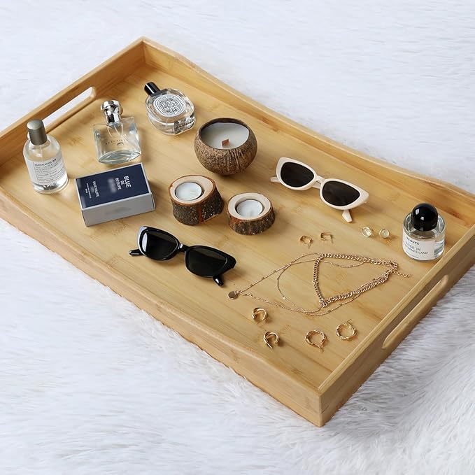 - Perfect for Christmas Parties and More: The bamboo tray can be used as a serving tray for parties and weddings to serve cheese, wine, snacks, and meals. It also makes for a comfortable breakfast-in-bed experience. Additionally, the decorative tray can be used on Halloween and other occasions to show off your candles, flowers, books, and sculptures