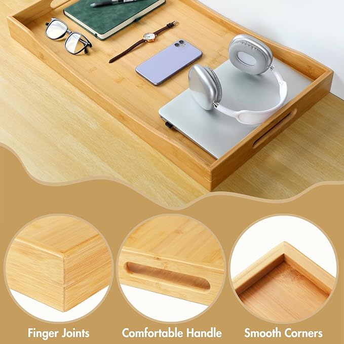 - Ottoman Tray with a Large Capacity: Add a natural touch of bamboo to your coffee table with the classic serving tray by GOBAM. Its extra large size is perfect for serving breakfast or appetisers to guests, family and friends on Halloween, Christmas and New Year Parties
