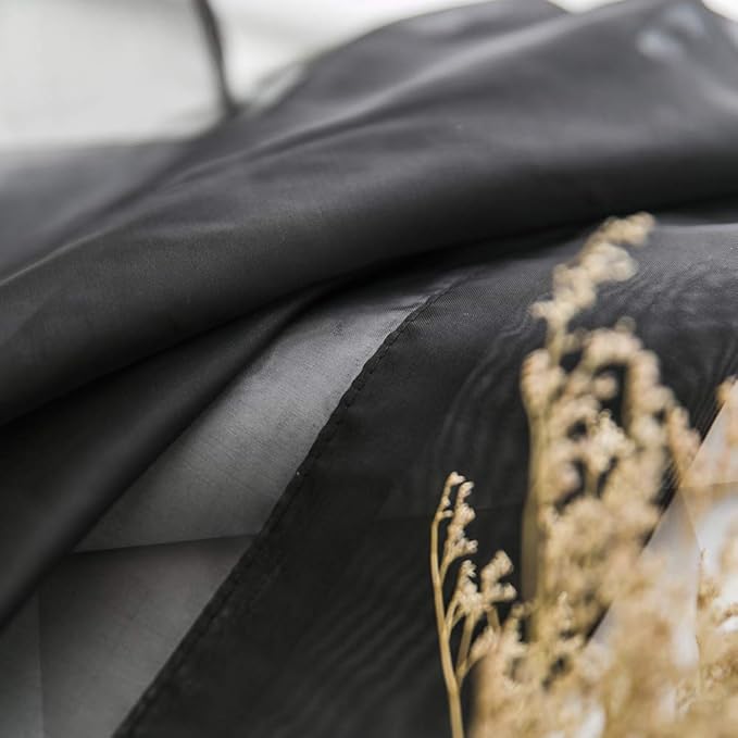 MIULEE 2 Panels Kitchen Tiers Half Window Sheer Halloween Curtains-Rod Pocket Voile Drapes for Kitchen Bathroom-Small Windows 29 by 24 Inch Black