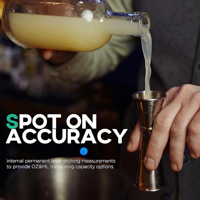 - DESIGN: Rolled lip and professional welded structure make double jigger generous and beautiful, comfortable to touch