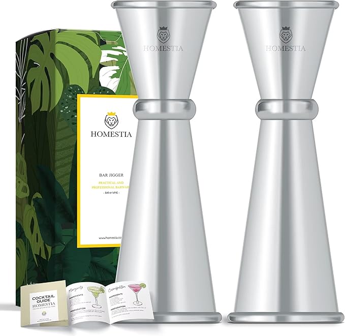 Homestia 2 Pcs Double Cocktail Jigger - Double Jigger and Japanese Style Stainless Steel Bar Measuring Jigger - 1 Oz to 2 Oz Jiggers -Silver Alcohol Measuring Tools (2 Pieces)