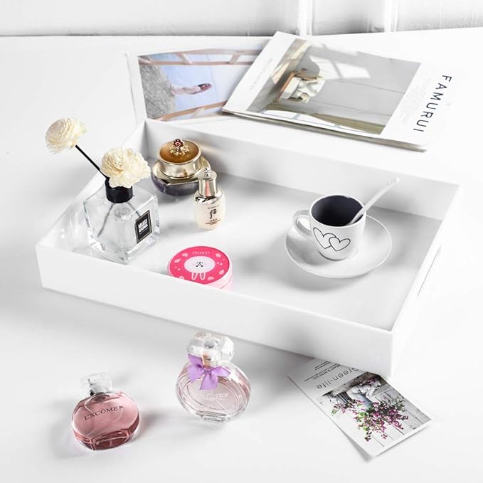 Sooyee Serving Tray with Handles,16" x 12" Decorative Tray,Coffee Table Tray,Acrylic Tray for Breakfast, Tea, Food, Butler,Table Ottoman Vanity Countertop,White