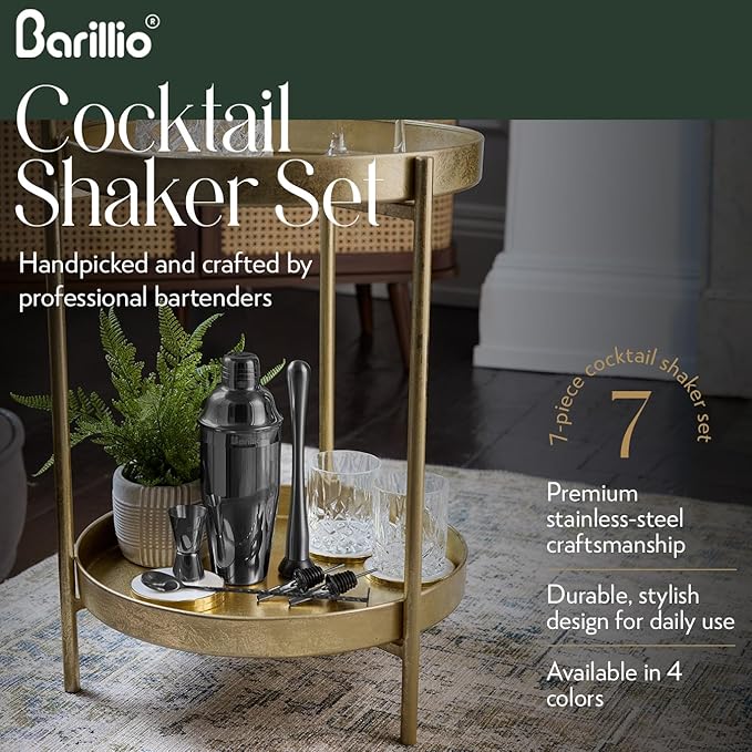Barillio Black Mixology Bartender Kit - 8-Pc Stainless-Steel Travel Cocktail Shaker Set with Bag - Bar Tools w/Martini Shaker, Drink Mixer Spoon & Mojito Muddler for Cocktails - Bar & Bartending Kit